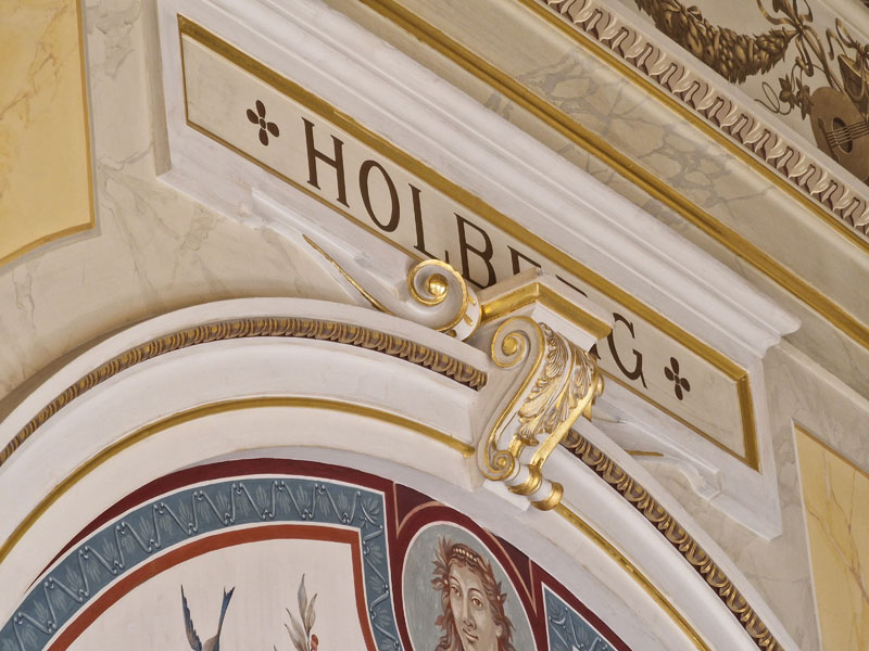 Også danske Ludvig Holberg har fået sig navn i foyeren. I