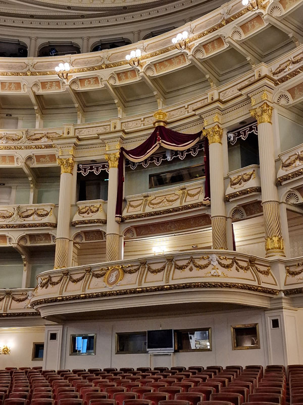 Operasalen er imponerende. Billederne til venstre og i midten er