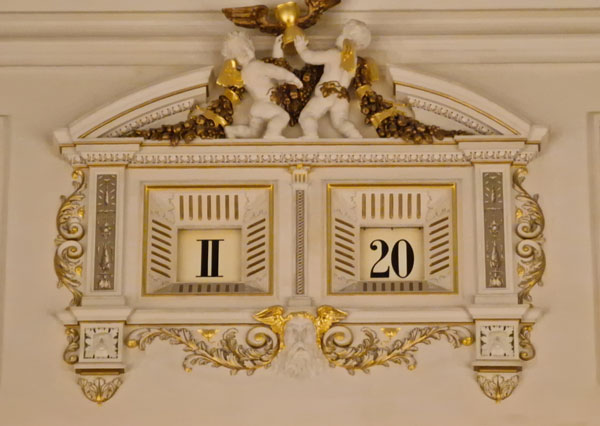 operasalen er anbragt et ur øverst over tæppet. Det skulle