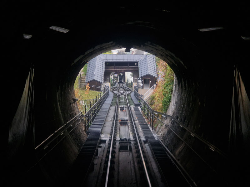 kabel-bjergbanen, der afgår lige bag DomQuatier, anbefales, hvis