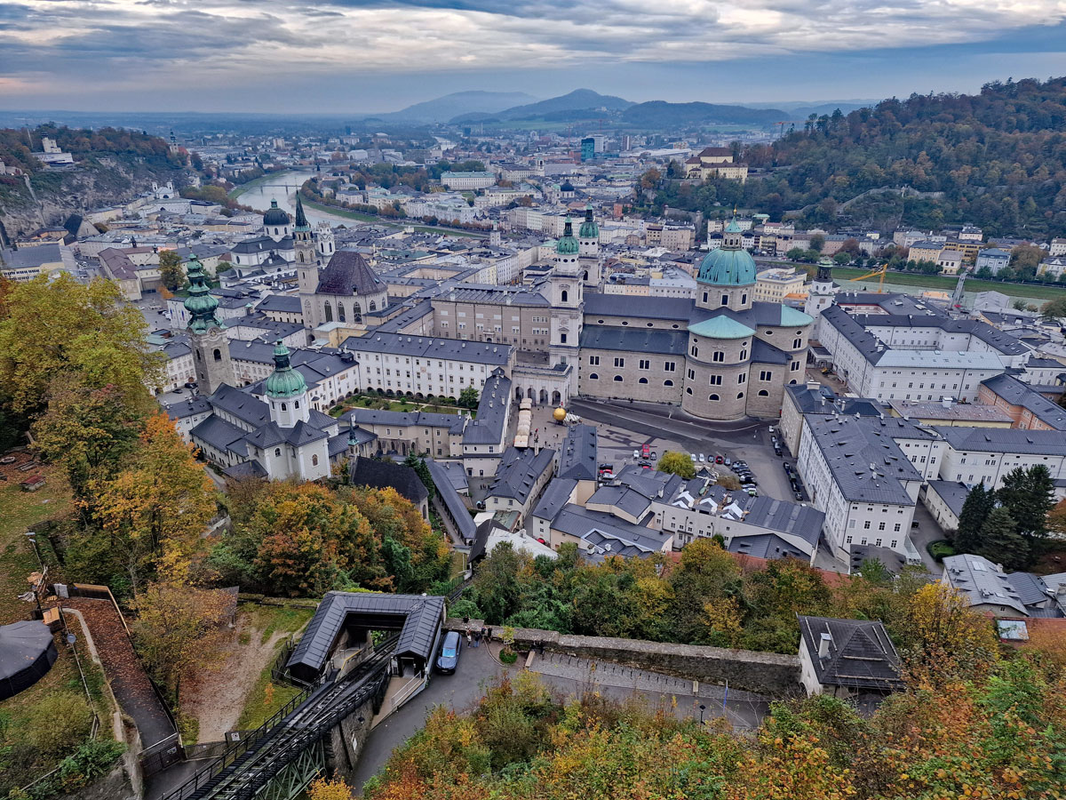 Kik over byen med Nordvest fra fæstningsværket, Hohensalzburg.