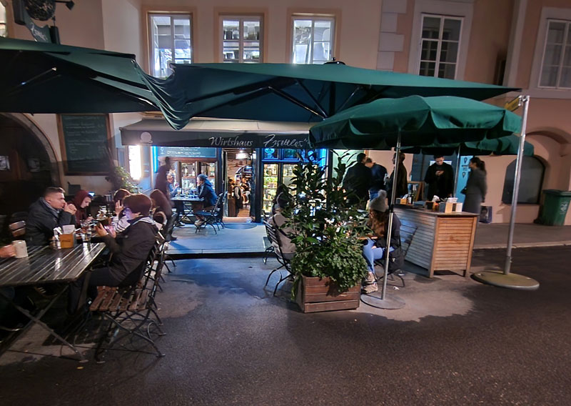 spiste den på det anbefalede spisested, Zwettlers’s Wirtshaus.