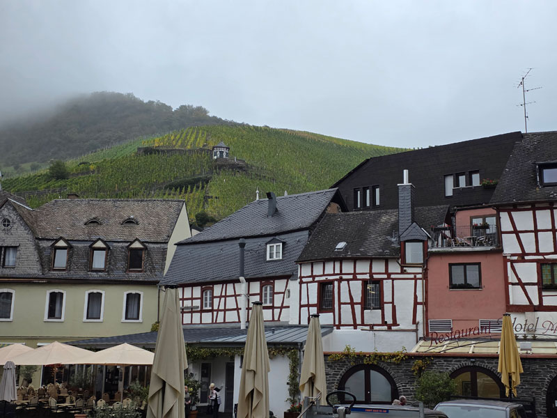 om den lille bjergby ved Mosel flodens bred. Man når dertil