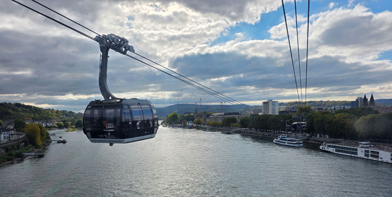 moderne svævebane henover Rhinen, og både fra svævebanens