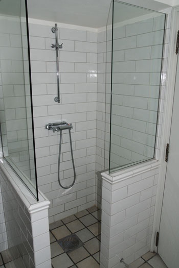 fordi varmen ikke bliver i brusekabinen. Ikke alle værelser har